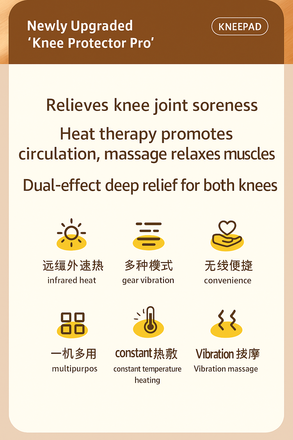 Sama ada sebab sakit sendi, usia, atau kerja berat, alat ni bantu kurangkan kesakitan, panaskan sendi, dan pulihkan pergerakan dengan lebih selesa dan pantas.